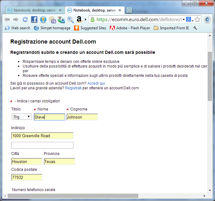 Compilazione automatica (compila un modulo con informazioni identità predefinite)